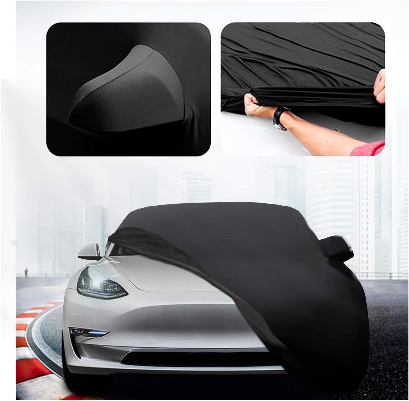 The car cover for tesla model 3 may be purchased with an option bungee cord, recommended for use when your model 3 is parked in a high wind environment.